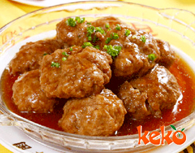 煎丸子:'1.将猪肉洗净剁成肉泥,加入蛋清、淀粉20克、酱油10克、精盐1克、味精1克搅匀。将水发玉兰片、水发元蘑均切成片。2.炒勺上火加豆油,将调好的馅挤成丸...